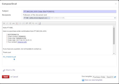 Lalu klik send PO by email, kita akan mengirim email pada supplier untuk mengkonfirmasi pesanan.
