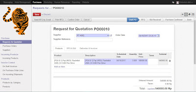 Lalu klik send, maka email akan dikirim ke supplier. Setelah itu klik save agar datanya tersimpan.